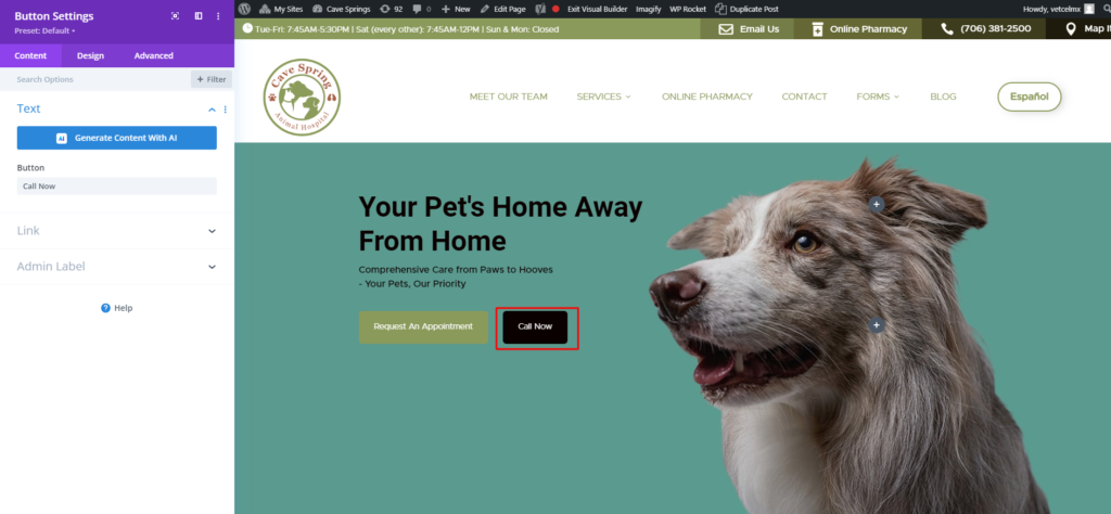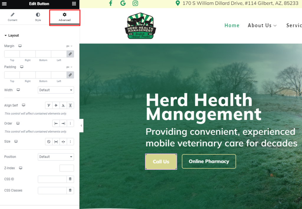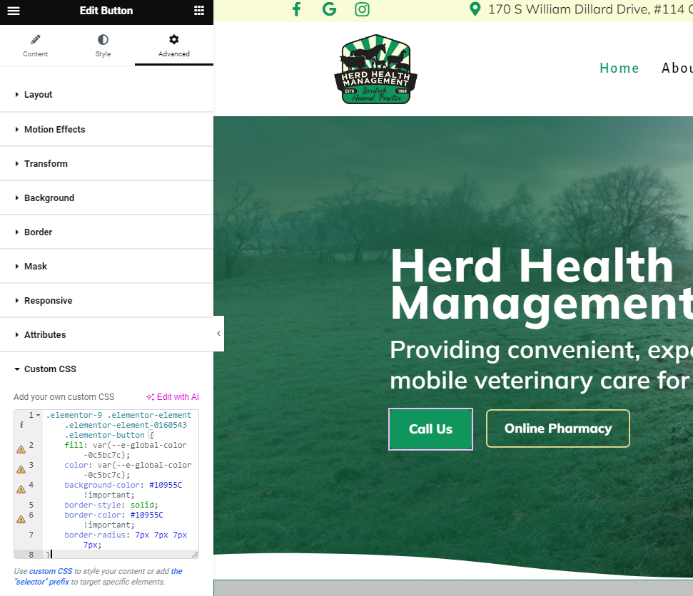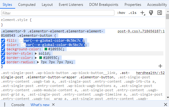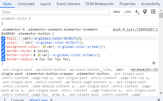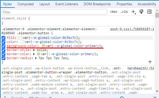 Imagine we need to change the color of a button and the builder is not giving us the option to do it: