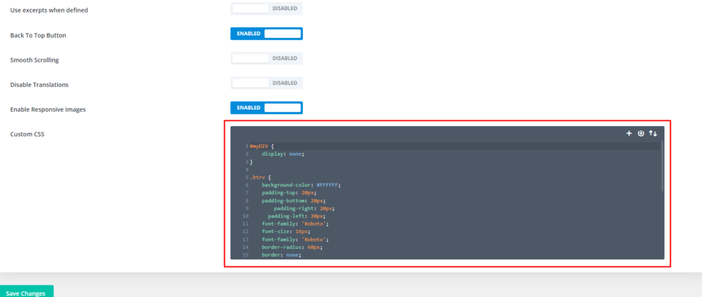 Now, to make this change permanent (because right now, if you refresh the page changes will dissapear) you need to copy the code and put it in your theme options: