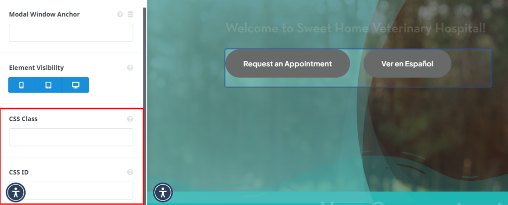 Scroll all the way down in the editor so you can see “CSS class” and “CSS id”: