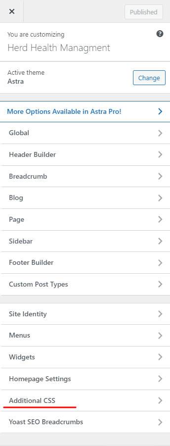 This is how we can customize our WordPress website using CSS in the Astra Theme.