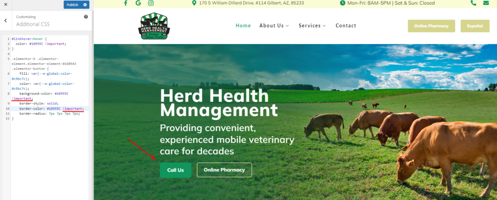 As you can see, we pasted the code and the button did not change color, in this case we need to use !important: