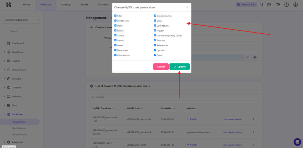 - Add User to Database: After creating the user, scroll down to the “Add User to Database” section.