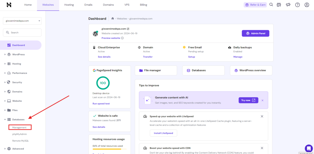 - Backup: Regularly backup your databases using cPanel’s backup tools or any other method provided by Hostinger.