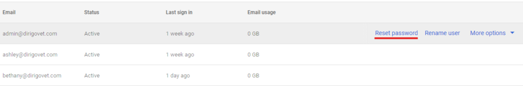 From here on, you can add, remove, rename and perform password resets to your email users: