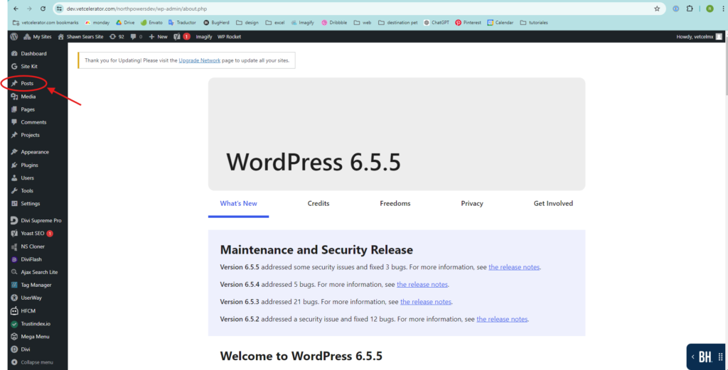 • Once inside, go to the menu on the left side and click on “Posts”.
