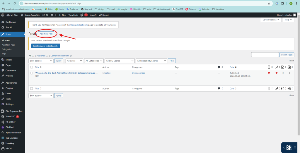 • At the top left, click on “Add New Post” to create a new post.
