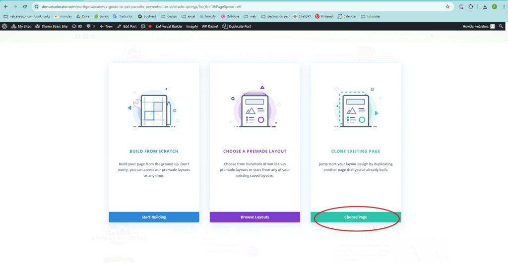 • Specifically in Divi Builder, when you enter, these options will appear. Click on Choose Page.