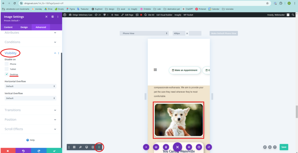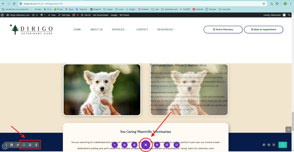 A webpage is viewed on various screen sizes, whether on a desktop, tablet, or mobile phone. In this article, you will learn how to visualize these different sizes in the various builders we use at Vetcelerator, as well as how to hide elements, images, or texts that do not fit the screen size.
